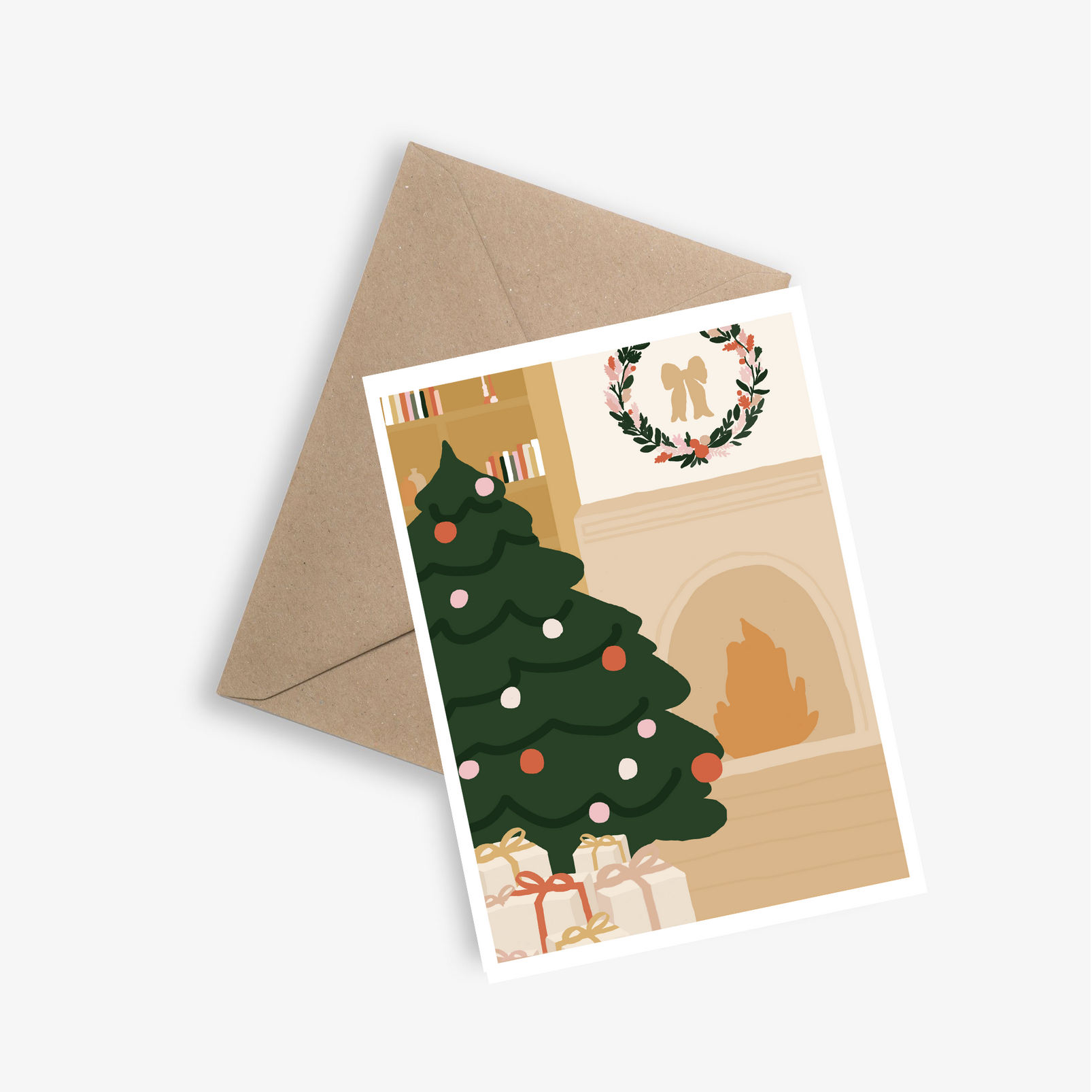 Au coin du feu - Carte Noël + Enveloppe Kraft