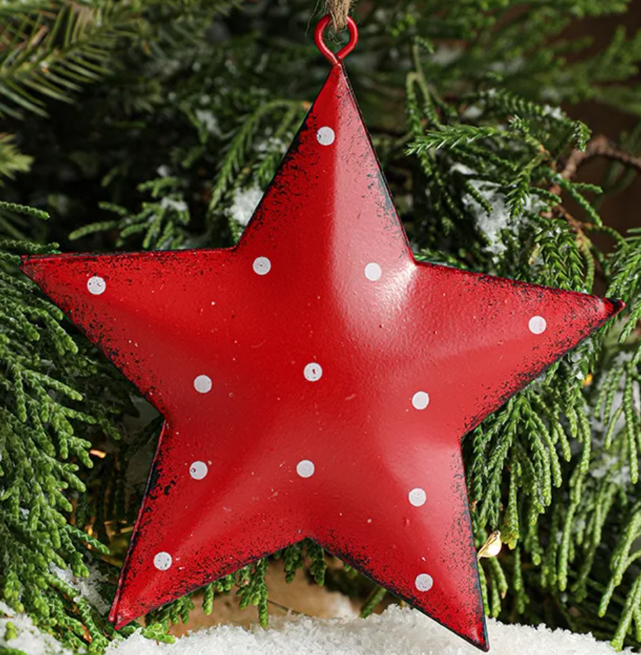 Suspension en forme d'étoile rouge à pois blanc (peinte sur les 2 faces)